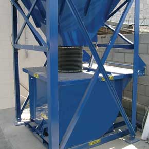 針對(duì)高塵量的應(yīng)用,MB可選配專為叉車傾倒而設(shè)計(jì)的1500 L 2300 LDumpster集塵箱。Dumpster集塵箱已配有密封蓋,不需加裝卸灰閥 。